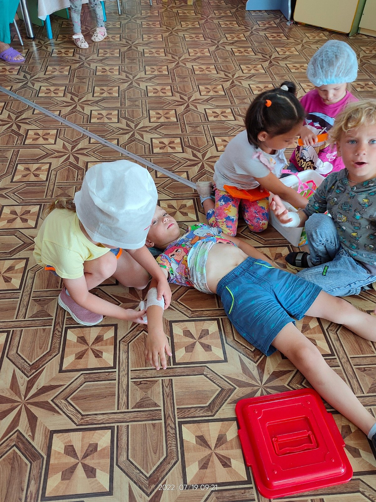 Закрепили правила поведения в такой, сложной ситуации, вспомнили единый номер службы спасения, и пожарной охраны. Упражнялись в оказании, первой медицинской помощи.