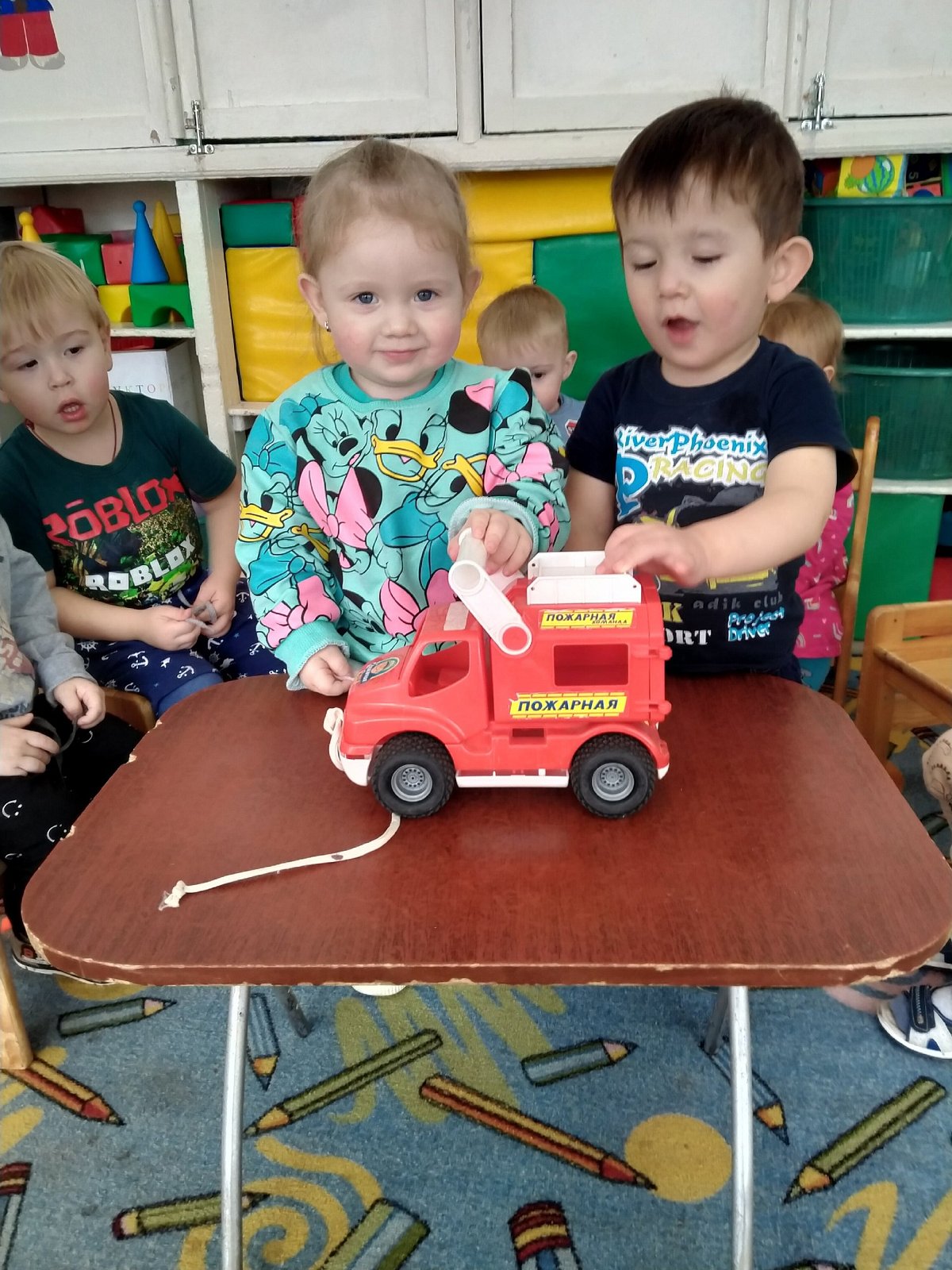 В первой младшей группе. Провели организованную деятельность по теме «Пожарная машина». Ребята познакомились с пожарной машиной, также узнали что спички детям не игрушка.