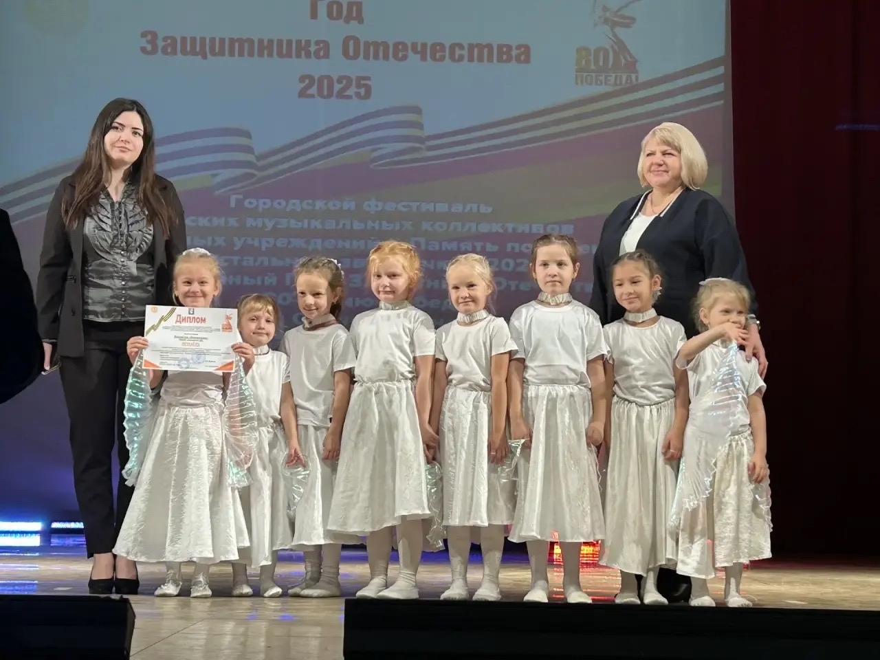 Коллектив воспитанников "Вдохновение" ПРИЗЁРЫ городского фестиваля детских музыкальных коллективов "Память поколений ("Хрустальные звёздочки") посвящённого году Защитника Отечества и 80-летию Победы советского народа в Великой Отечественной войне.
