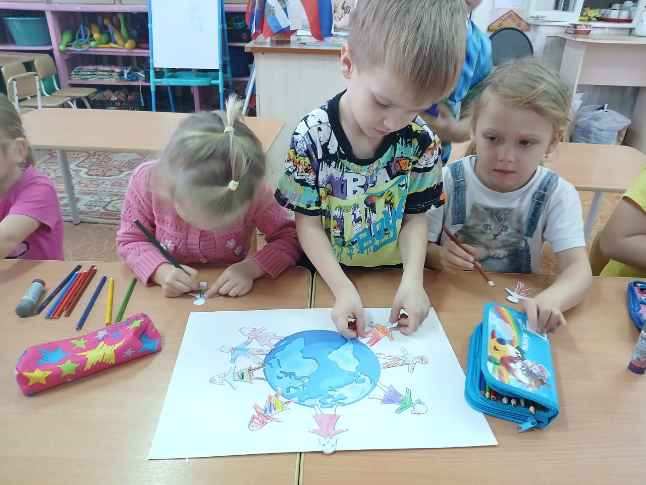 Группа: Непоседы изготовили сами коллективную работу" Россия-родина моя" посвящённый дню народного единства.