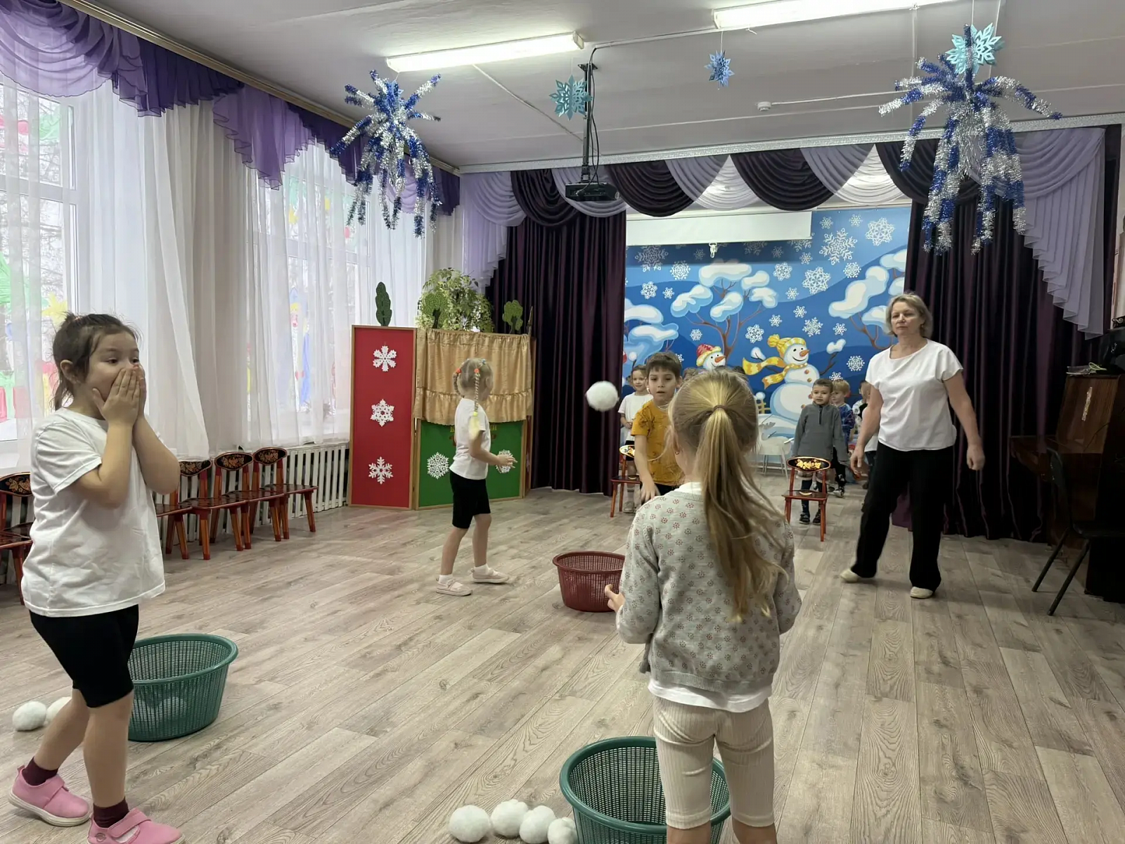 В старшей разновозрастной группе "Непоседы" 23 декабря прошел спортивный досуг "Зимние игры". Соревновались команды "Солнышко" и "Звездочка."