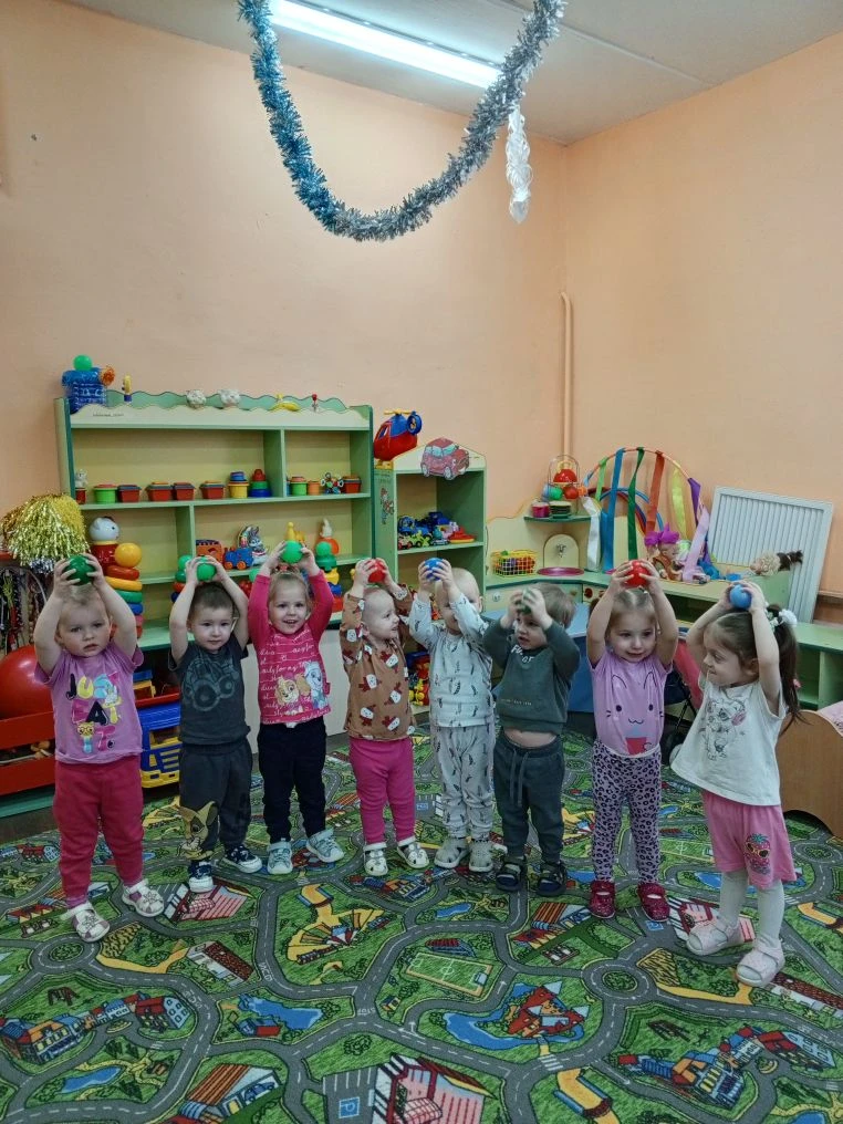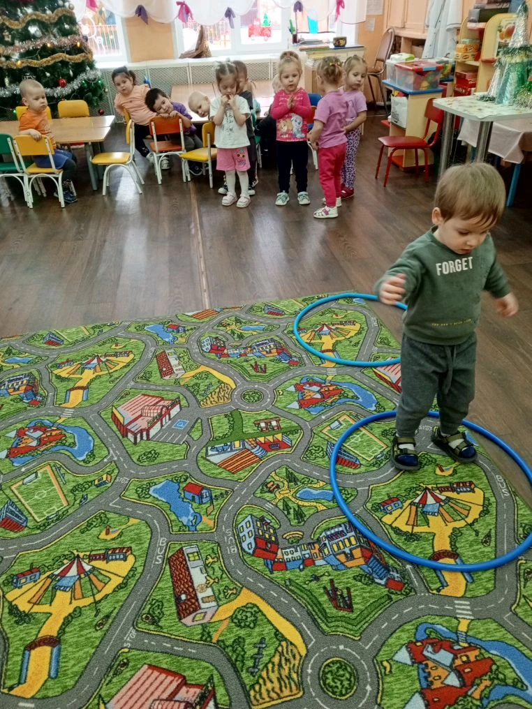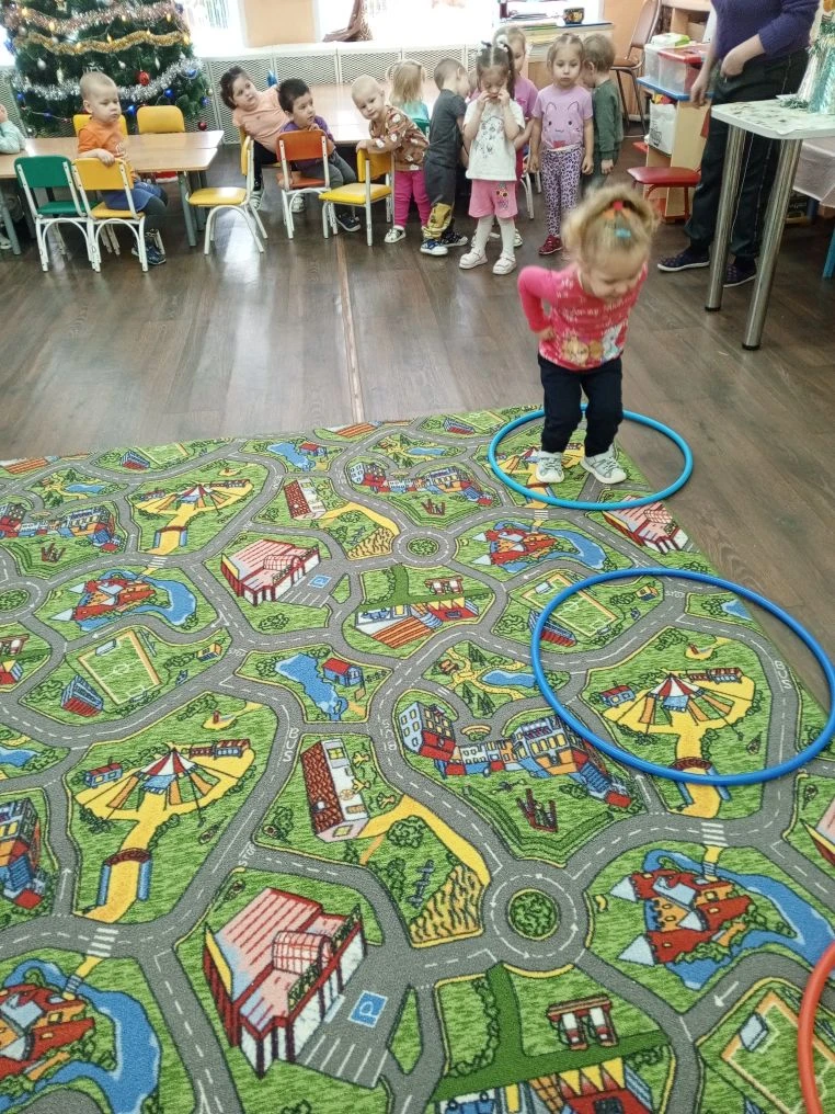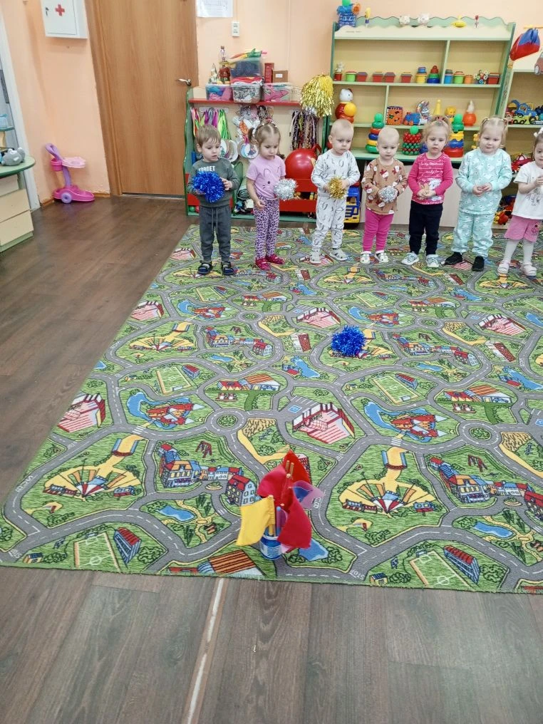 В первой младшей группе. Прошёл спортивный досуг "здравствуй , зимушка зима!" дети играли в игры "кто бросит до флажка снежок", "с кочки на кочку", "с мячиком", "петрушки". Дети проявляли активность при выполнении движений. Принимали активное участие в играх.