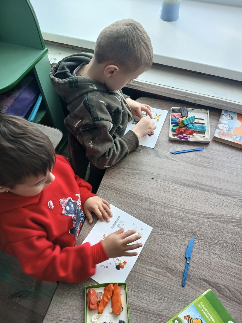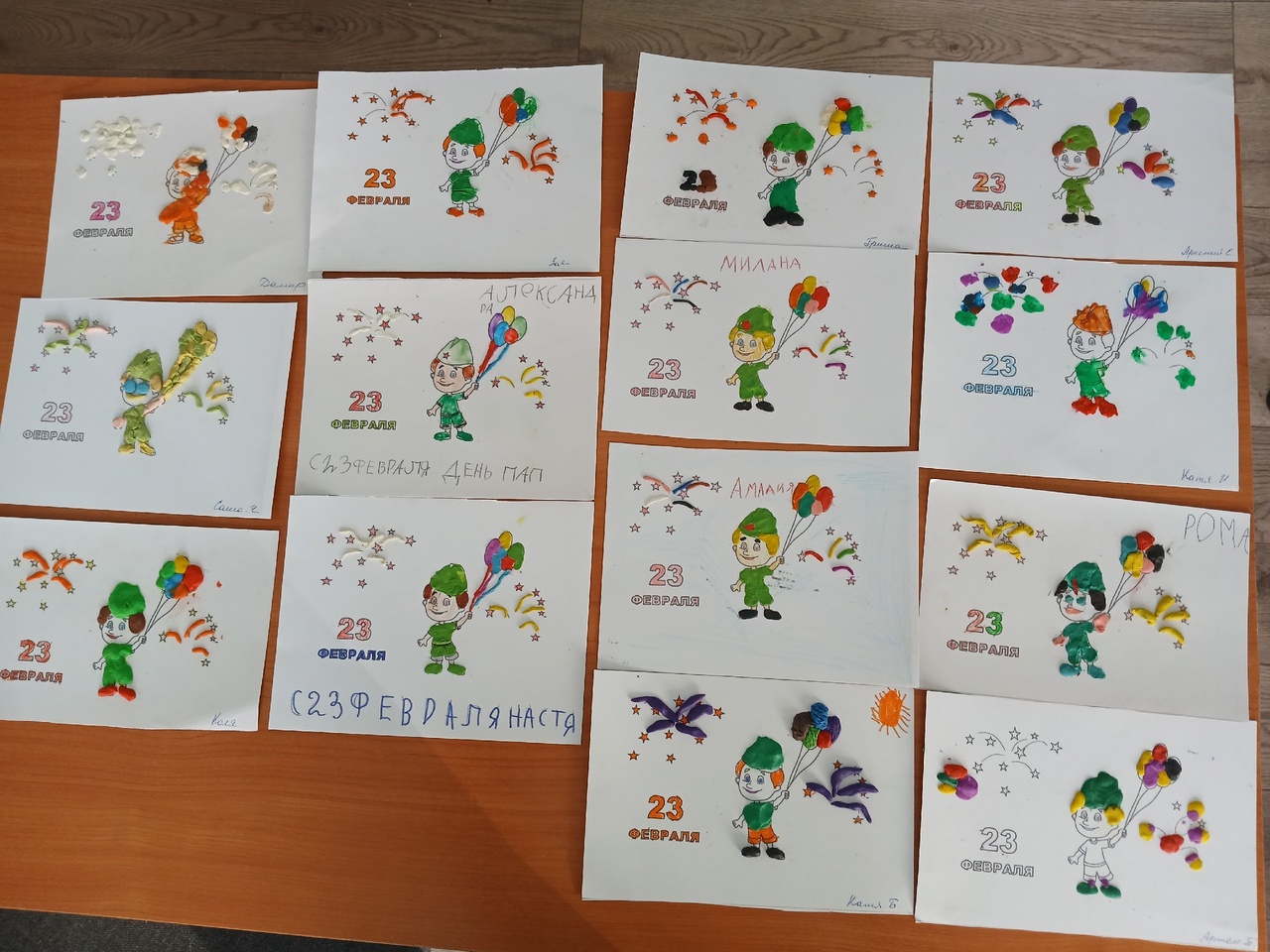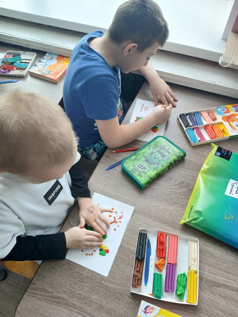 Ребята изготавливали декоративно-прикладное искусство на военную тематику. Создали лепные картины с изображением более или менее выпуклых, полуобъёмных объектов на горизонтальной поверхности. Основной материал — пластилин. Многие использовали комбинированные техники.