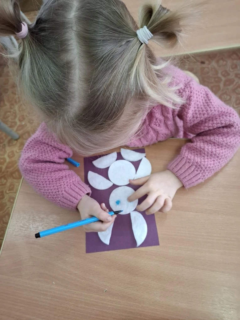 В разновозрастной старшей группе "Непоседы" ребята делали необычную аппликацию "Зайчик" из ватных дисков. Дошкольники увлеклись творчеством, зайки у них получились пушистые, красивые и разные!
