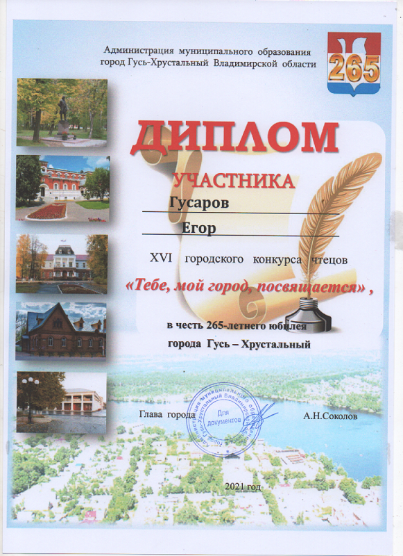 В городской библиотеке подведены итоги конкурса чтецов «Тебе, мой город, посвящается» в честь 265-летнего юбилея Гусь-Хрустального. В этом мероприятии приняли участие и наши воспитанники. Сначала они прошли первый этап конкурса, который состоялся в детском саду, а потом второй этап - в городской библиотеке.