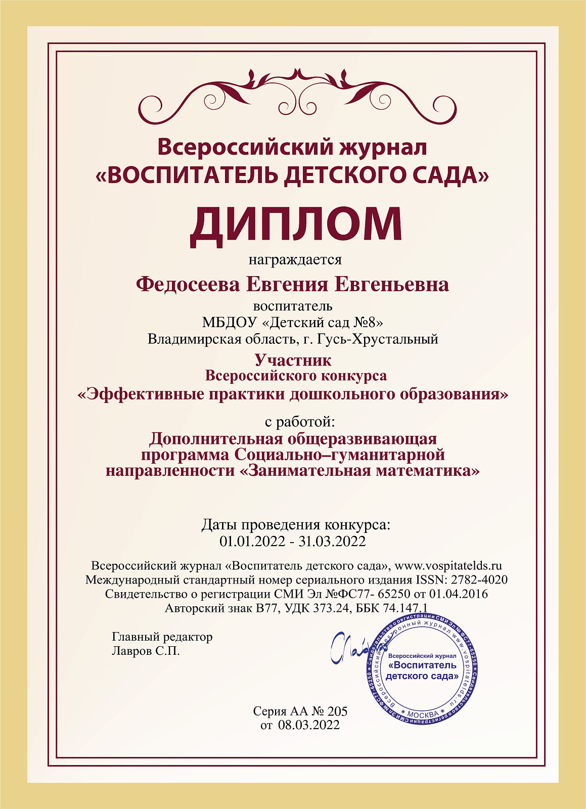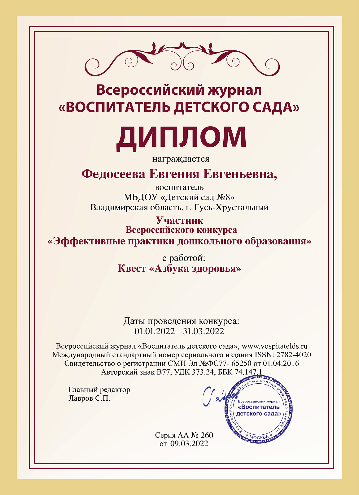 Педагоги нашего детского сада приняли участие во Всероссийском конкурсе "Эффективные практики дошкольного образования"