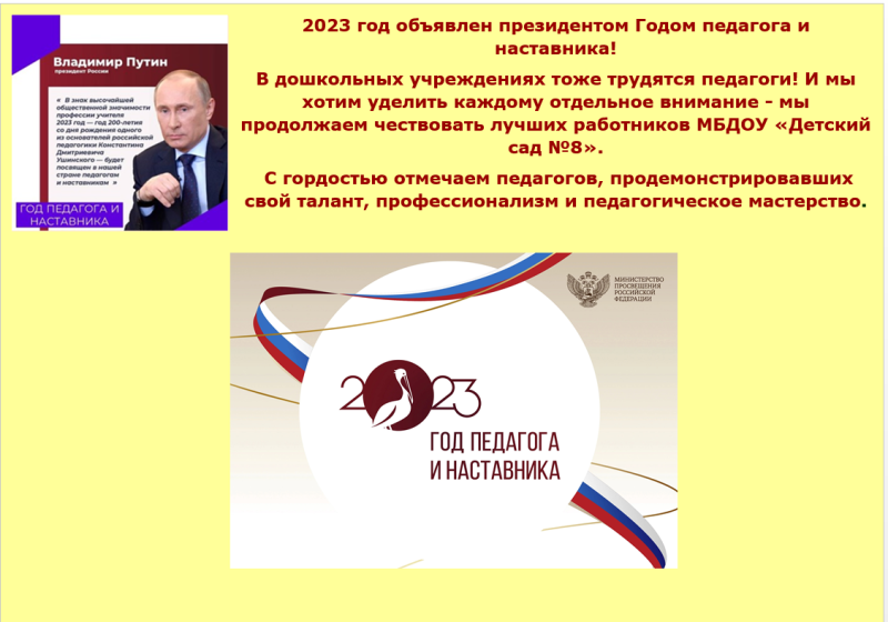В дошкольных учреждениях тоже трудятся педагоги! И мы хотим уделить каждому отдельное внимание - мы продолжаем чествовать лучших работников МБДОУ «Детский сад №8».