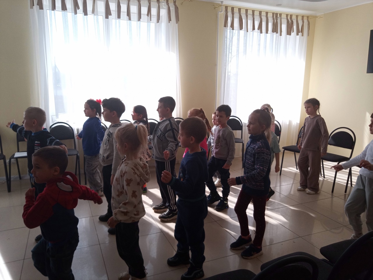 Студентки, обучающиеся по специальности "Дошкольное образование" провели с ребятами космическую зарядку, показали мультфильм.