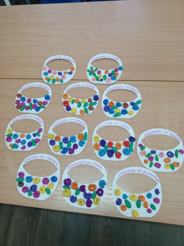 .,, ребята группы "познавайки". Приготовили в подарок вам красивые корзиночки. Они очень старались делать эту корзиночку, с любовью и душой. Желаем вам здоровья, успехов во всем. Дети вас любят