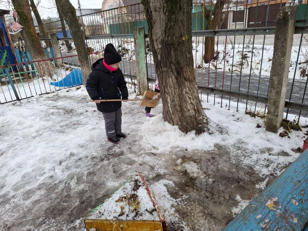 Ребята старшей разновозрастной группы "Непоседы" наблюдали за птицами, на боярышник прилетели синицы. Утепляли корни деревьев снегом и лепили снеговиков.