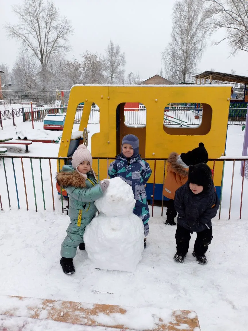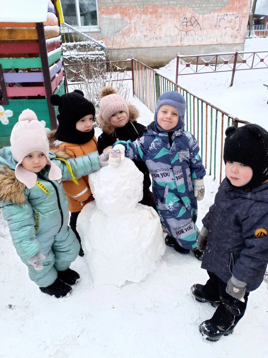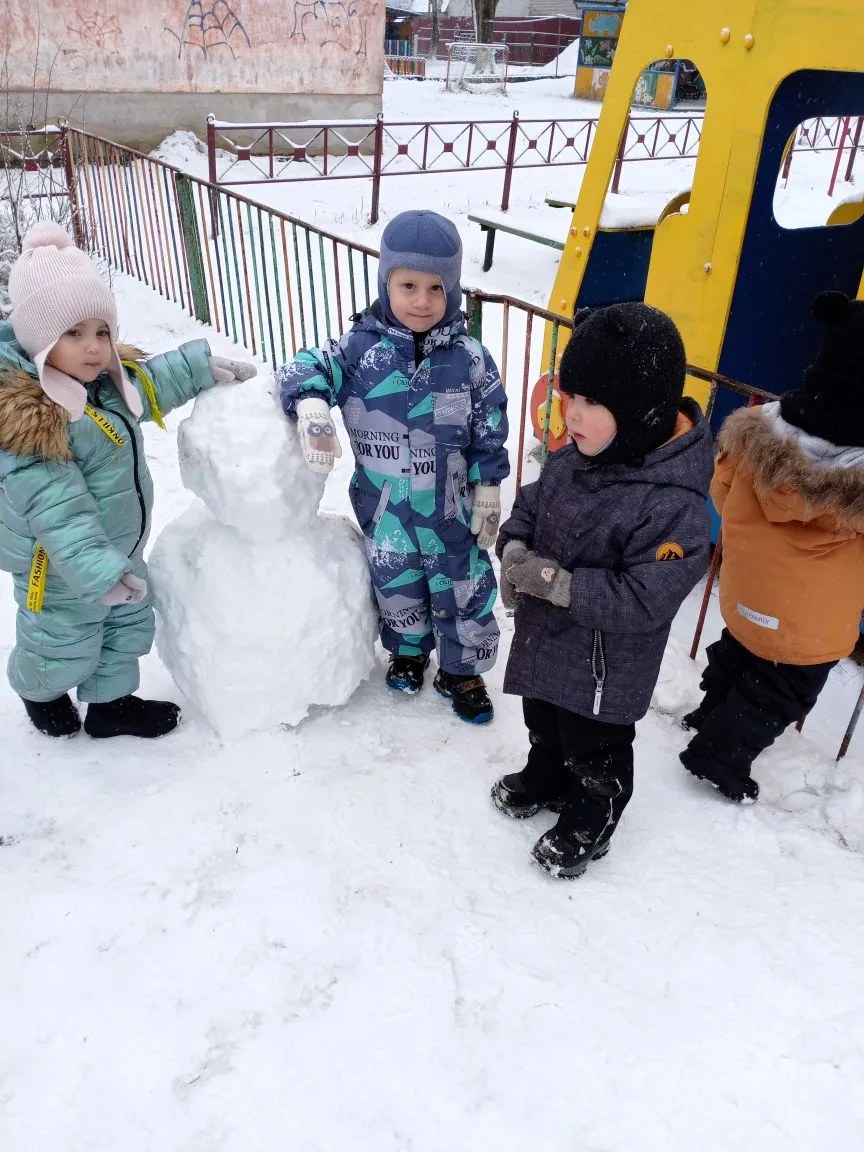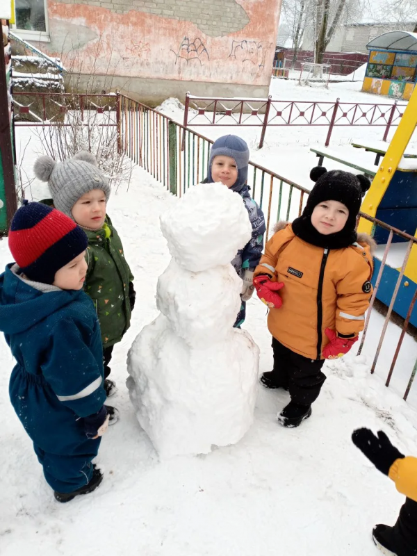 Ребята во второй младшей группе на прогулке решили сделать снеговика, ведь для этого есть все необходимое. Зима порадовала детей и подарила много снегу.