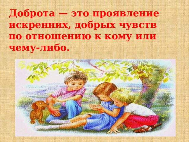 Доброта – это тончайшие и могучие корешки, которые питают дерево детской радости, радости нежного прикосновения к живому и красивому. Маленький ребёнок должен любить всё живое, ведь только доброта открывает ребёнку радость взаимопонимания.