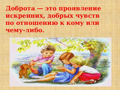 «Доброта» - это отзывчивость, душевное расположение к людям, стремление сделать добро другим, - говориться в толковом словаре русского языка.
