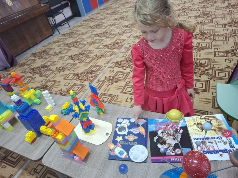 Дети с интересом посмотрели презентацию "Путешествие в космос." На выставке рассматривали собранные модели ракет и книги о Вселенной.