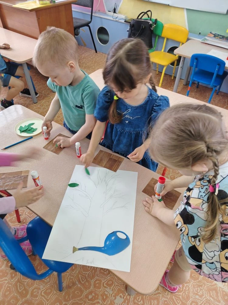 Сегодня наши ребята совершили чудо! Мы " спасали" засохшее дерево. Дети говорили вежливые слова: "спасибо", " пожалуйста", "извините", " здравствуйте ", " до свидания " - и каждое слово словно капелька воды оживляла его. Потом приклеили лейку, "полили" дерево, а затем каждый прикрепил свой зелёный листочек. И чудо случилось: засохшее дерево расцвело!