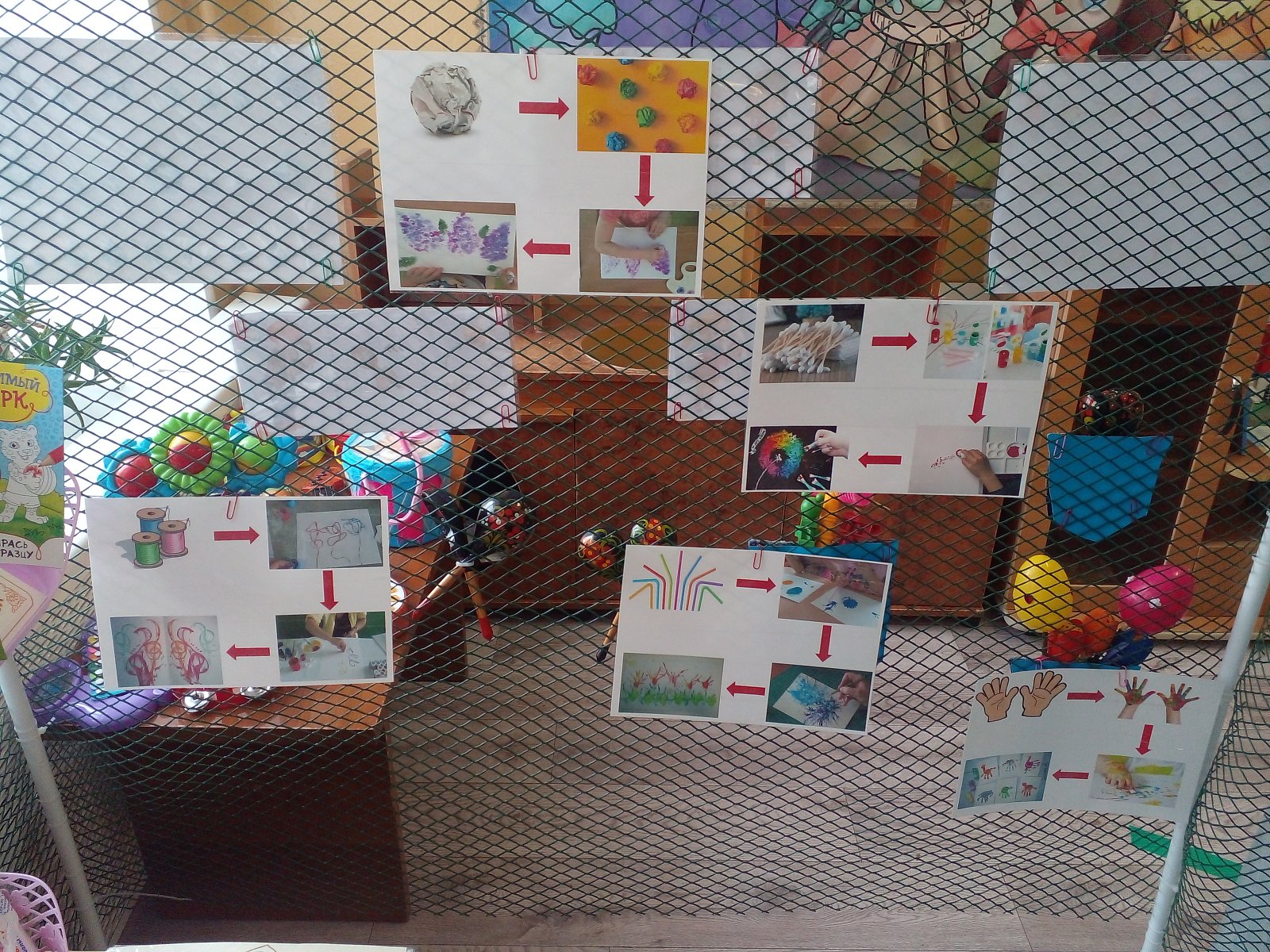 Каждый вид художественно-эстетической деятельности располагается на стенках Домика детского творчества.