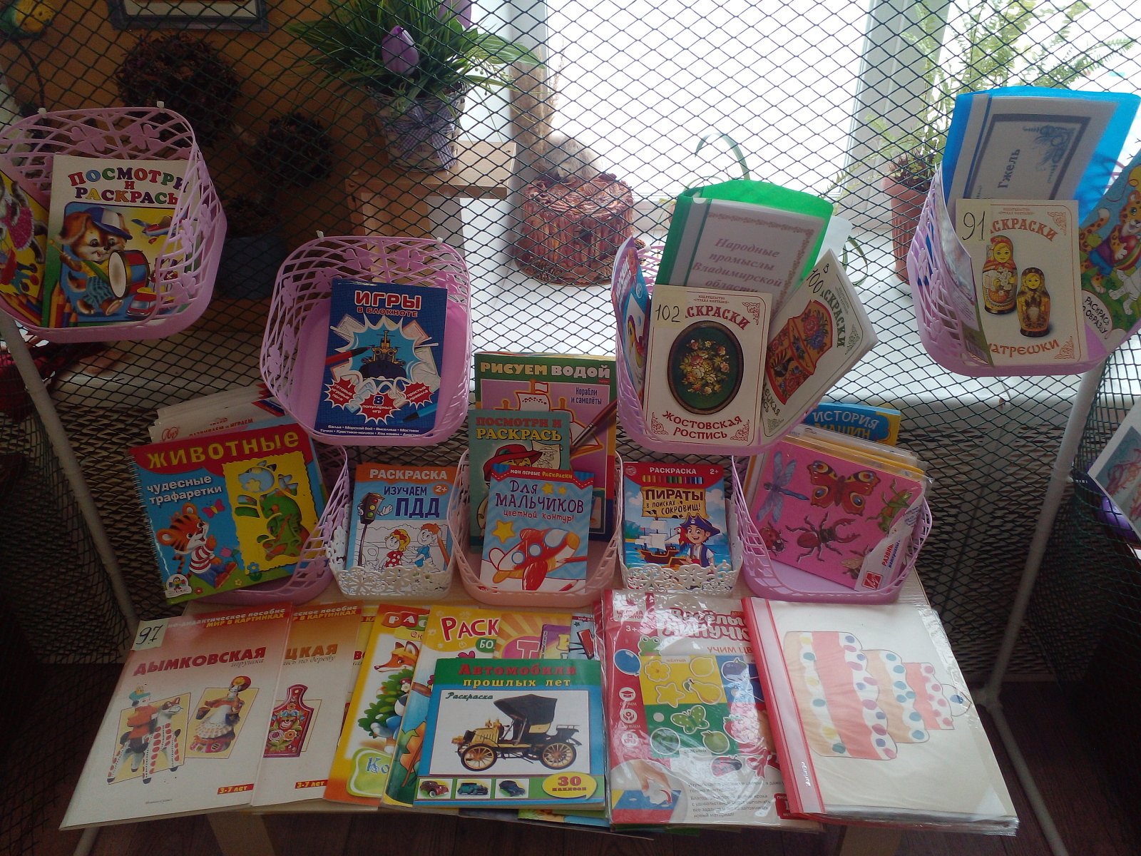 -Раскраски самой разной тематики, трафареты с изображением животных, растений, фруктов, овощей, автомобилей и пр.
